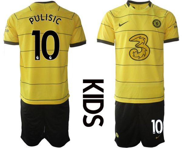 Dětské fotbalové tričko Chelsea FC Stadium 2021/22 žluté s potiskem Pulisic 10