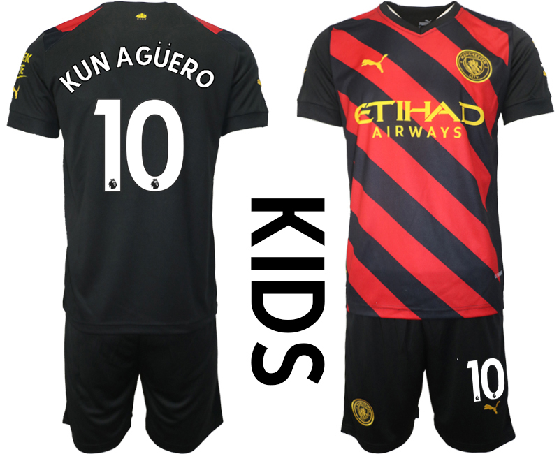 Dětská souprava Manchester City 2022-23 black red short sleeve + shorts KUN AGÜERO 10