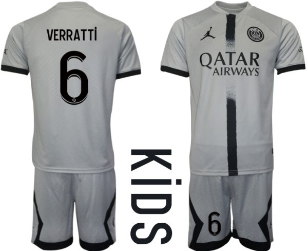 Fodboldtrøjer Billige Paris Saint-Germain PSG 22-23 Udebanesæt Børn VERRATTI 6
