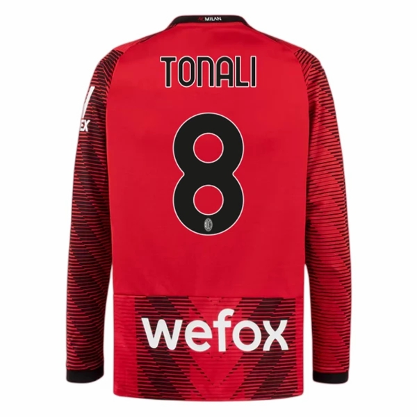 Fodboldtrøjer til mænd AC Milan Hjemmebanetrøje 2023-24 Langærmet med navn Tonali 8
