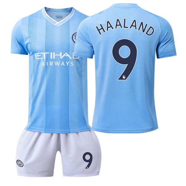 Vær den første til at anmelde "Kinder Manchester City 2023-24 Heimtrikot Fußballtrikots Trikotsatz HAALAND 9"