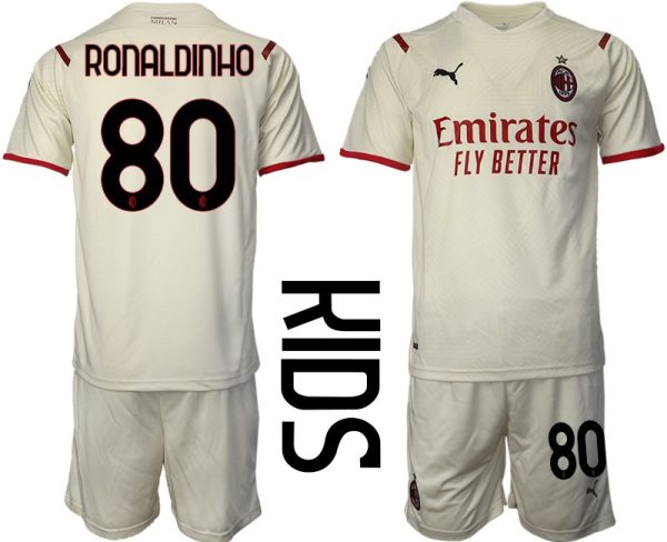 AC Milan Away Jersey 2022 Beige Red for Kids with Print Ronaldinho 80