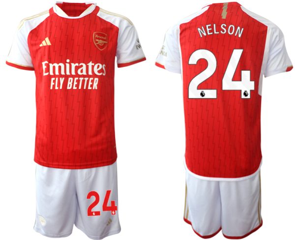Cheap Arsenal home football shirt 2023-24 red and white men's set Reiss Nelson 24