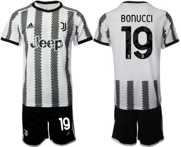 Mens Football Shirts Juventus 2022-23 Home Shirt Black White buy with print BONUCCI 19