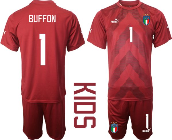 Italy kits goalkeeper jersey for kids 2022-23 red football shirts with print BUFFON 1