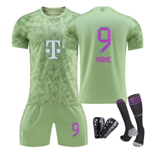 The Bayern Munich 2023-24 Oktoberfest football jersey combines olive green with white logos. The base design consists of a floral pattern that gives the jersey a peaceful look. Both the collar and the cuffs of the Adidas Bayern 2023-24 Oktoberfest jerseys are green. You may notice that the club's crest is not the usual one. It is an older version and will also be seen on the 2023-24 Oktoberfest jersey. The initials of the club are also on the collar, just like on the Arsenal 2023-24 jersey.