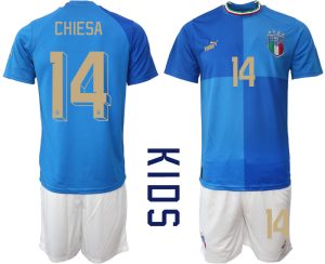 Italy jerseys for kids to play football 2022-23 in blue CHIESA 14