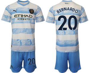Manchester City Warm-up Top 2022/23 white and blue Short Sleeves + Shorts BERNARDO 20