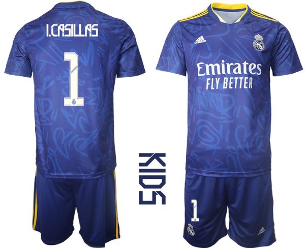 Real Madrid away jersey set blue 2021/22 Away jersey for kids with print I.Casillas 1