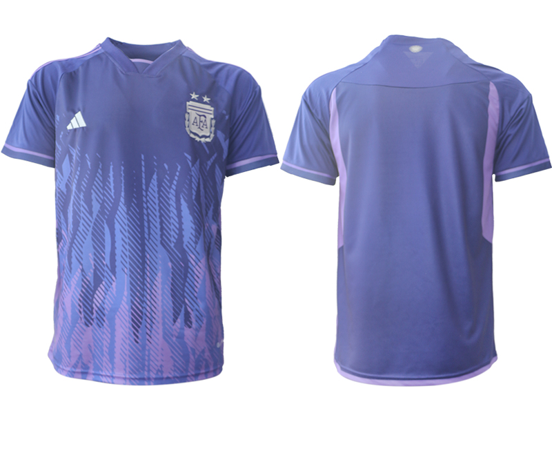 Das Argentinien WM 2022 Auswärtstrikot kombiniert zwei verschiedene Lila-Töne mit silbernen Details, wie dem Adidas- und dem Verbandslogo. Offiziell lauten die Farben „Legacy Indigo/Purple Rush“.Das Sol de Argentina in hellem Silber befindet sich auf der Rückseite unter dem Kragen, ähnlich wie beim Trikot.Die 3 Streifen auf den Schultern des neuen Argentinien WM 2022 Auswärtstrikots sind in einem dezenten hellen Lila gehalten. Um den Look zu vervollständigen, hat das Argentinien WM 2022 Auswärtstrikot eine schwache Grafik auf der Vorderseite – auch diese Grafik ist von der Sol de Mayo inspiriert.