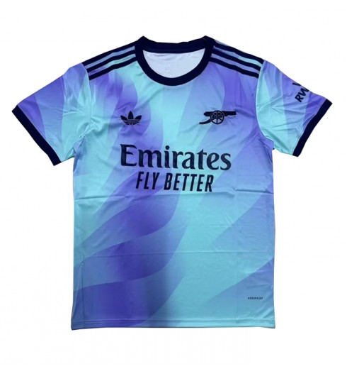 Das dritte Fußballtrikot von Arsenal 24-25 hat eine aquafarbene Hauptfarbe, die mit Light Purple und Navy Blue kombiniert wird. Das Trefoil Logo, das seit 1992 nicht mehr auf einem Arsenal Trikot verwendet wurde, feiert auf dem Arsenal 24-25 Trikot ein Comeback. Das Design des dritten Arsenal-FC 2024-25 Fußballtrikots ist im Gegensatz zum klassischen Trefoil-Logo modern. Es hat ein modernes Farbverlaufsdesign, das an Nordlichter erinnert.