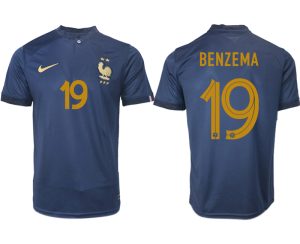 BENZEMA #19 Frankreich FIFA WM Katar 2022 marineblau Heimtrikot Kurzarm für Herren