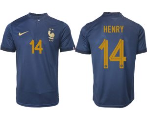 HENRY #14 Frankreich FIFA WM Katar 2022 marineblau Heimtrikot Kurzarm für Herren