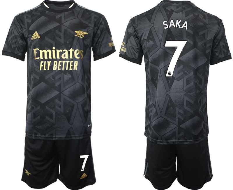 La camiseta visitante del Arsenal 22-23 se presenta con un aspecto elegante en negro con detalles metálicos en bronce.La camiseta visitante Adidas Arsenal 22-23 es negra, combinada con dorado metálico para todos los logotipos y gris para las 3 bandas de los hombros.Para completar el aspecto discreto, la camiseta Arsenal 2022-23 está rematada con un tenue estampado geométrico abstracto en la parte delantera y en las mangas. Este gráfico consiste en las letras AFC, cuya fuente está directamente inspirada en las letras del Arsenal que los aficionados se cruzan de camino al Emirates Stadium.
