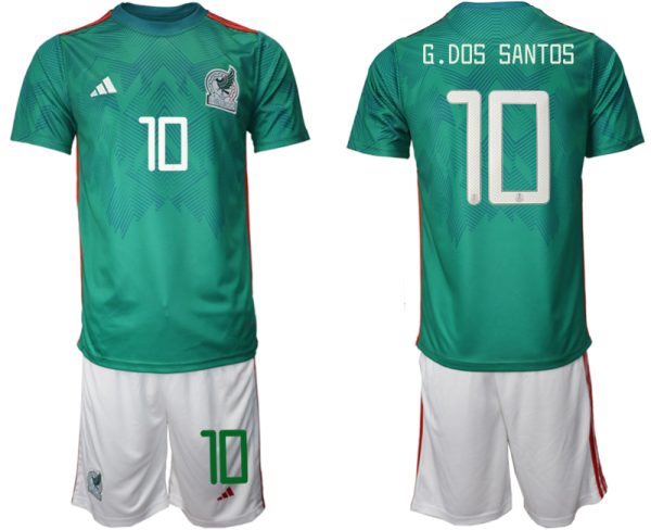 Mexiko Trikots 2022 Heimtrikot Trikotsatz Grün Kurzarm + Weiß Kurze Hosen G.DOS SANTOS #10