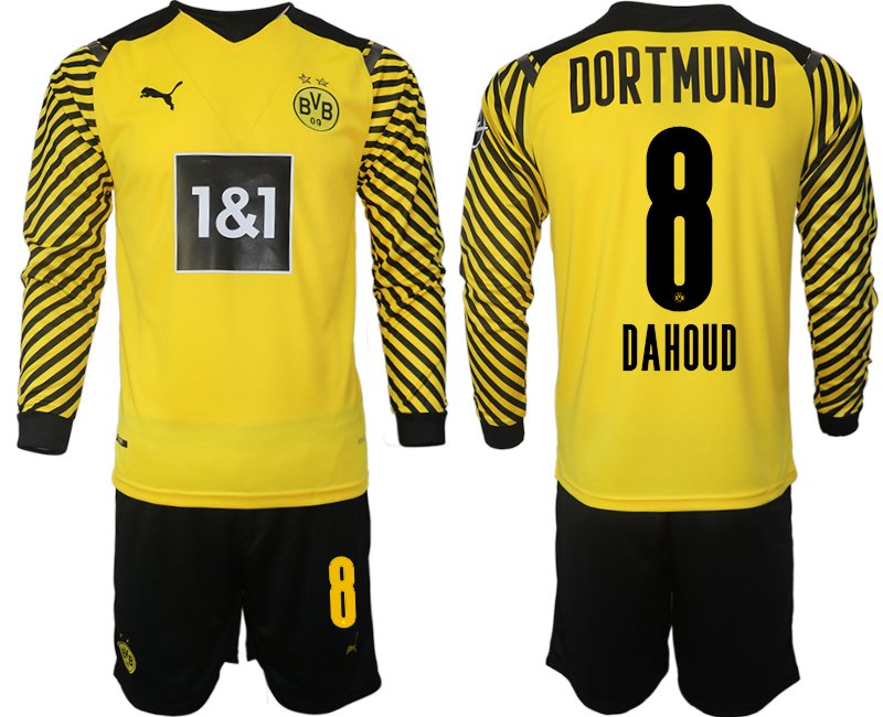 Borussia Dortmund 2022 Maillot domicile jaune et noir manches longues + short Dahoud 8