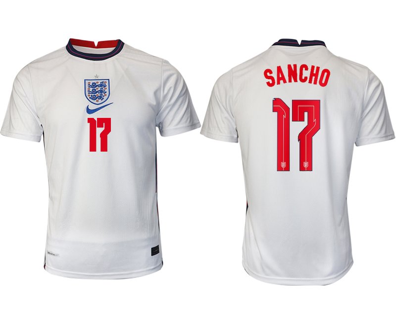 Maillot de football manches courtes Angleterre domicile EM 2022 blanc/bleu avec impression SANCHO 17
