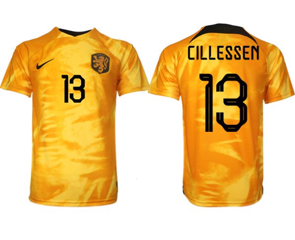 Maillot domicile homme Pays-Bas Coupe du Monde 2022 Orange Maillot de football avec impression CILLESSEN 13