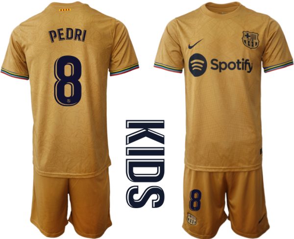 Le maillot extérieur FC Barcelone 22-23 a une couleur de base or, évoquant les débuts des années 2000. Tous les logos sont en bleu marine foncé. La couleur et le design des manches du nouveau maillot font référence aux médailles d'or que les athlètes reçoivent lors des Jeux Olympiques, 30 ans après la tenue des Jeux Olympiques de 1992 à Barcelone. Les Jeux ont été inaugurés le 25 juillet 1992. De plus, les couleurs des cinq anneaux olympiques sont visibles sur les poignets des manches et sur les chaussettes.