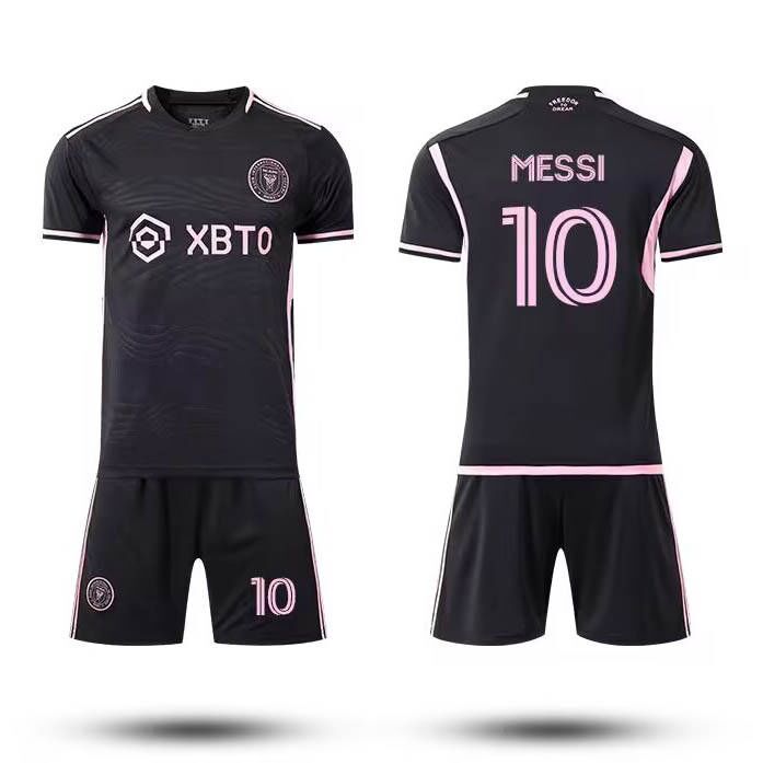 Das Adidas Miami 2023 Auswärtstrikot ist überwiegend schwarz, alle anderen Details und Logos sind ausschließlich in Rosa gehalten. Nach einer der Vorlagen von Adidas für die WM 2022 gibt es einen rosafarbenen Streifen, der auf beiden Seiten verläuft und hinten am Saum zusammenläuft.