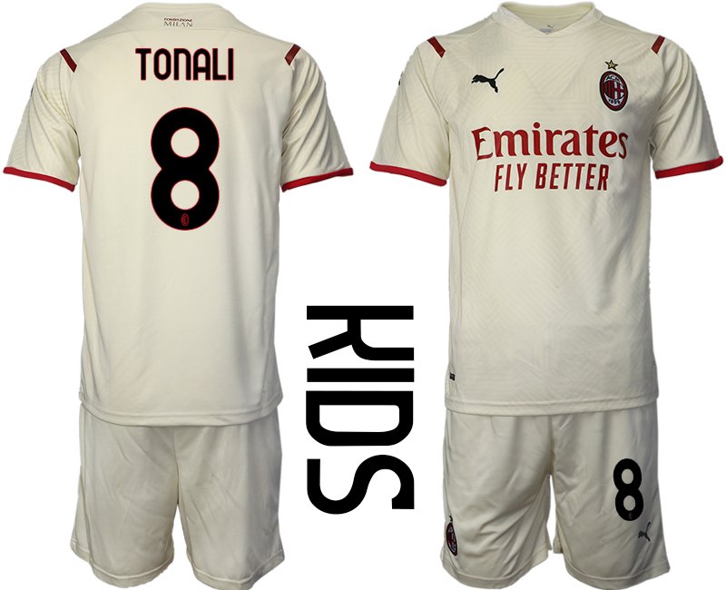 AC Mailand Auswärtstrikot 2022 Beige Rot für Kinder mit Aufdruck Tonali 8