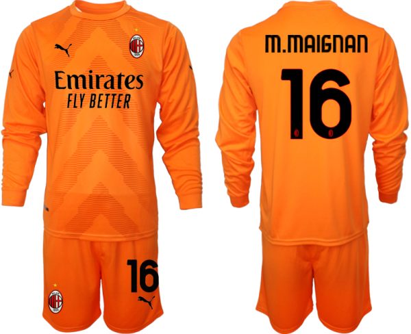 Herren AC Milan Goalkeeper 2022-23 orange Langarm + Kurze Hosen M.MAIGNAN 16
