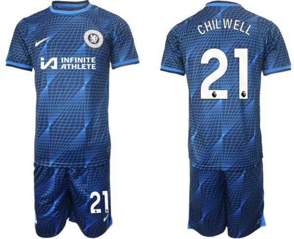 Herren Chelsea 2023-24 Auswärtstrikot Fußballtrikots Trikotsatz Ben Chilwell 21