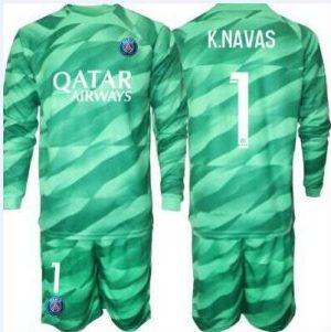 Günstige Kinder Paris Saint-Germain PSG Torwart Heimtrikotsatz grün Langarm 2023-24 K.NAVAS 1