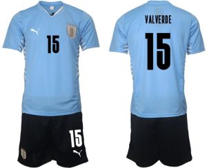 Herren Trikotsatz Uruguay 2022 Heimtrikot hellblau mit Aufdruck VALVERDE 15