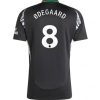 La maglia da trasferta dell'Arsenal 2024-25 è stata disegnata in collaborazione con l'azienda londinese Labrum. Rende omaggio agli ex giocatori dell'Arsenal David Rocastle e Ian Wright con una base nera e accenti in rosso e verde.