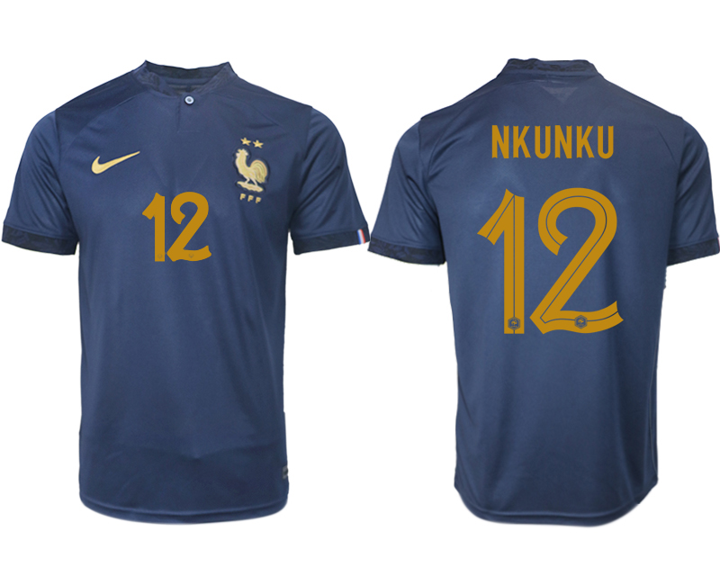 NKUNKU #12 Francia Coppa del Mondo FIFA Qatar 2022 - Maglia Home Blu Navy a maniche corte da uomo