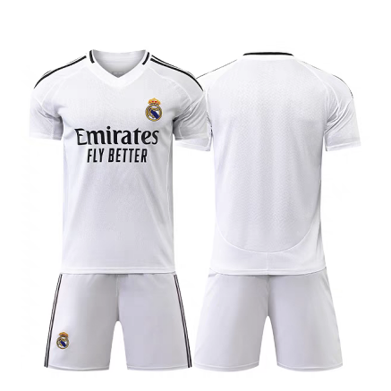 La maglia del Real Madrid Club de Fútbol 2024-25 presenta il tradizionale colore bianco della squadra, abbinato al nero per le tre strisce, mentre la maglia del Real Madrid 2024-2025 evoca i ricordi delle maglie dei primi anni 2000 grazie alla classica combinazione di colori e al design semplice.