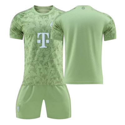 Das Bayern München 2023-24 Oktoberfest Fußballtrikot kombiniert Olivgrün mit weißen Logos. Das Grunddesign besteht aus einem floralen Muster, das dem Trikot einen friedlichen Look verleiht. Sowohl der Kragen als auch die Ärmelbündchen des Adidas Bayern 2023-24 Oktoberfest Trikots sind grün.Vielleicht fällt dir auf, dass das Wappen des Vereins nicht das übliche ist. Es ist eine ältere Version und wird auch auf dem Trikot 2023-24 Oktoberfest zu sehen sein. Auf dem Kragen befinden sich außerdem die Initialen des Vereins, genau wie auf dem Arsenal 2023-24 Trikot.