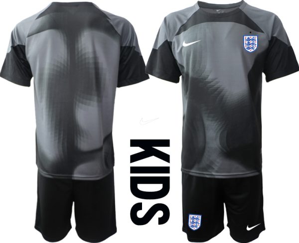 Kinder Fußball Trikot England Torwarttrikot 2022/23 schwarz Kurzarm + Kurze Hosen