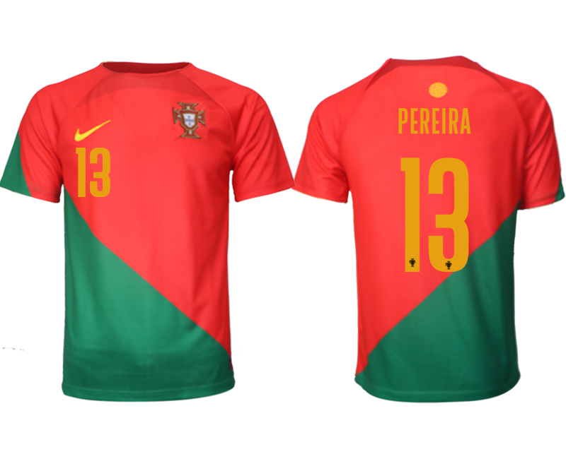 Neuen Fussballtrikots Portugal Heimtrikot WM 2022 Kurzarm mit Aufdruck PEREIRA 13
