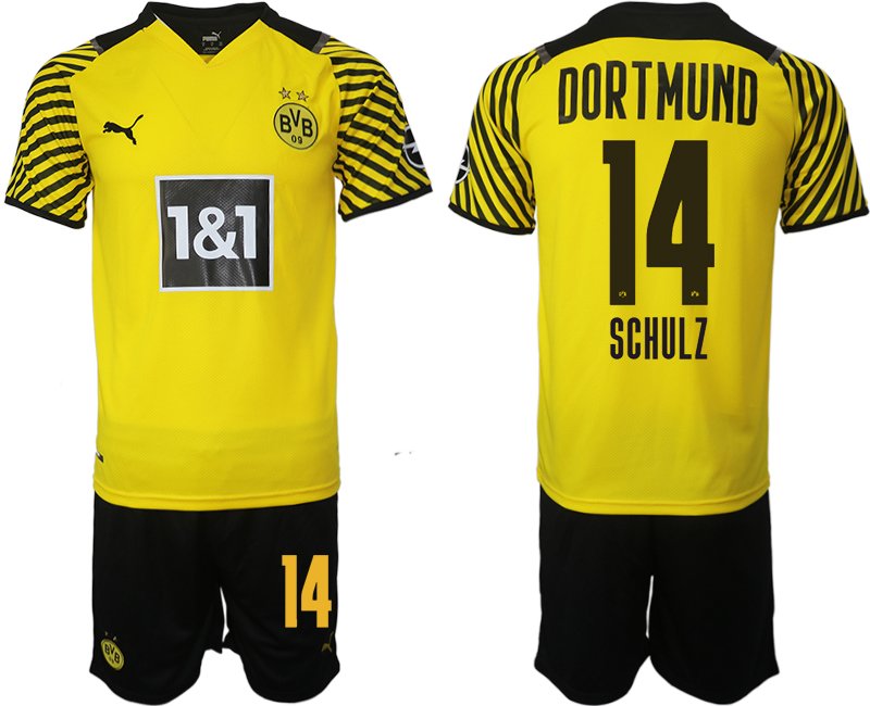 BVB Borussia Dortmund Thuisshirt Heren 2022 Schulz 14# Geel Zwarte Set