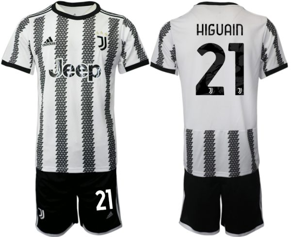 Heren Voetbalshirts Juventus 2022-23 Thuisshirt Zwart Wit kopen met opdruk HIGUAIN 21