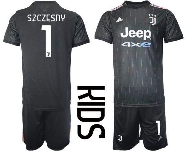 Juventus Turijn uittenue 2021/22 voor kinderen zwart met opdruk Szczesny 1