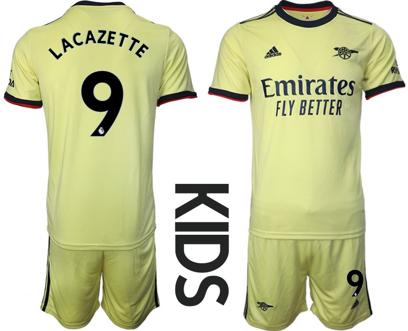 Kindervoetbalkit Arsenal FC Away 2021/22 Geel met print Lacazette 9