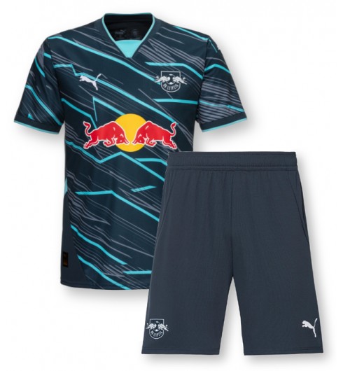 De RB Leipzig 2024-25 derde voetbaltrikot van Rasen Ballsport RB Leipzig is overwegend donkerblauw met futuristische grafieken die de vooruitgang en de volgende generatie van de club vieren. De diepe V-hals en de manchetten zijn in mintgroen gehouden, terwijl het clubwapen en RB Leipzig in wit zijn.