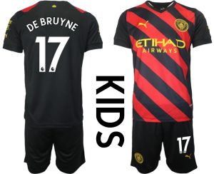 Kinder Manchester City uittenue 2022-23 zwart rood met opdruk DE BRUYNE 17