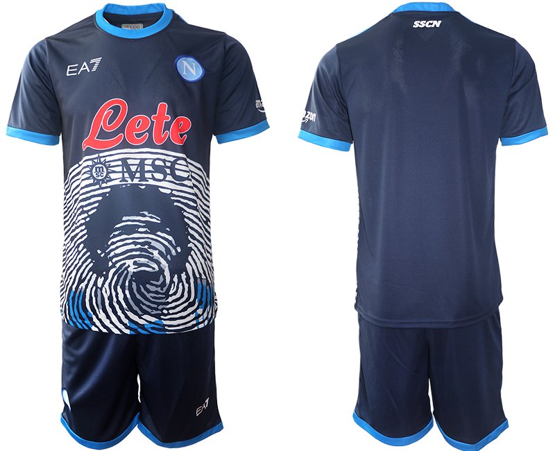 SSC Napoli 2021-2022 Voetbalshirt marineblauw met opdruk van Maradona