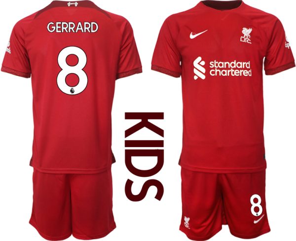 Otroške nogometne majice Liverpool Home Shirt 2022/23 Red kratkimi rokavi + kratke hlače GERRARD 8