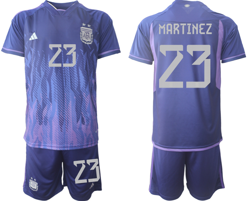 MARTINEZ #23 Argentina FIFA World Cup Qatar 2022 Away Jersey Purple za moške s kratkimi rokavi + kratke hlače