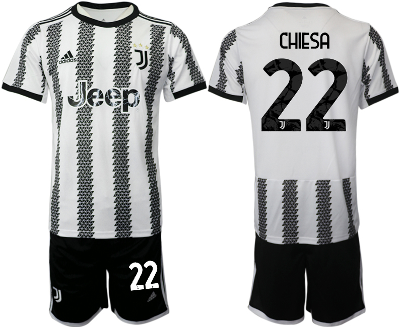 Fotbollströjor för herrar Juventus 2022-23 Hemmatröja Svart Vit med tryck CHIESA 22