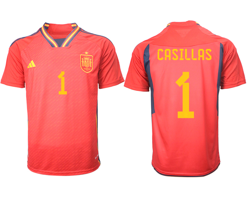 Utöka din Spanien-kollektion med den hemmatröja som spelarna bar vid VM. Vi rekommenderar denna svettavledande, superbekväma och andningsbara modell med en behaglig känsla. Denna tröja är idealisk för att förbereda dig för din nästa motståndare. Den sticker ut visuellt med en föreningslogotyp på bröstet.