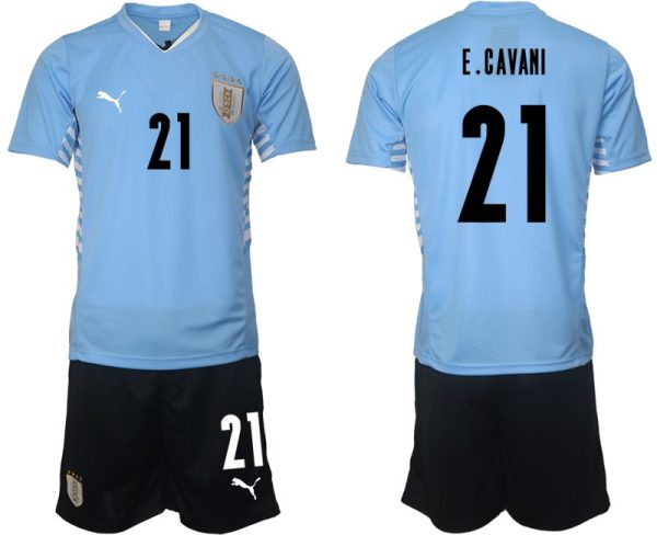 Uruguay 2022 Heimtrikot hellblau Herren Trikotsatz mit Aufdruck E.Cavani 21